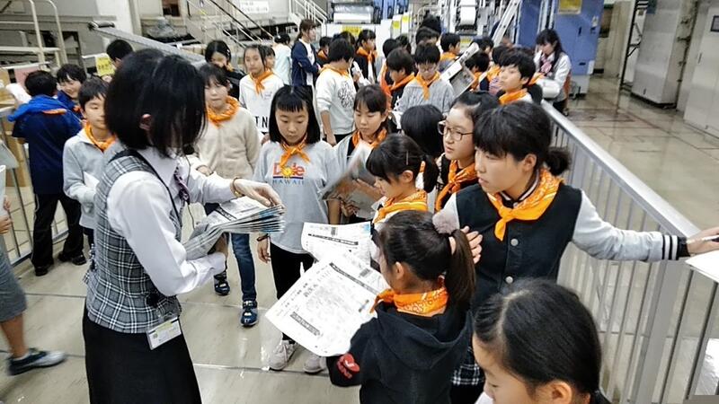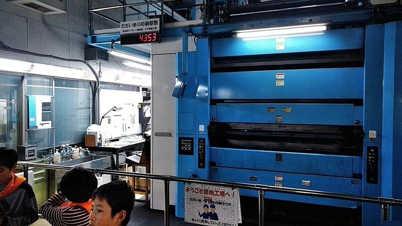 ↑新聞ができるまでを見た後、実際の輪転機の見学(夕刊は1秒で50部印刷できるそうです)