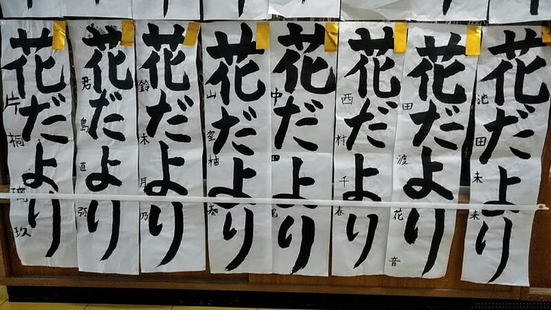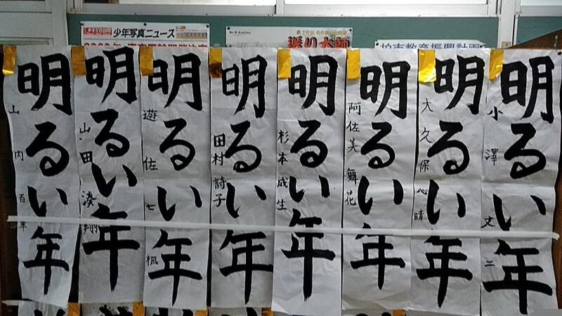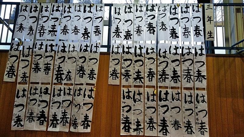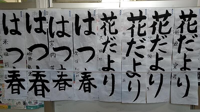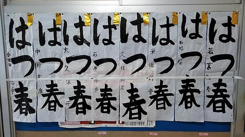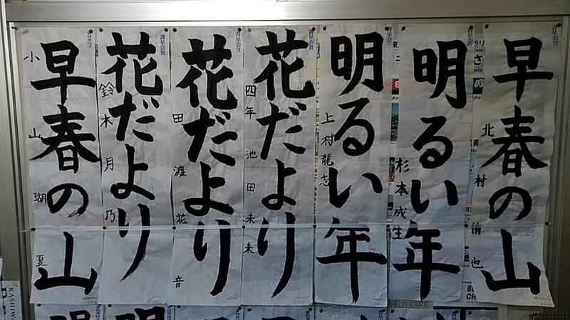 先日開催した校内書き初め展の「金賞」と書星会に出品し「書星会賞」と「特選」になった作品を1月いっぱい1階廊下に掲示しています。来校の機会があればぜひご覧ください。 ↓左2年生・右1年生