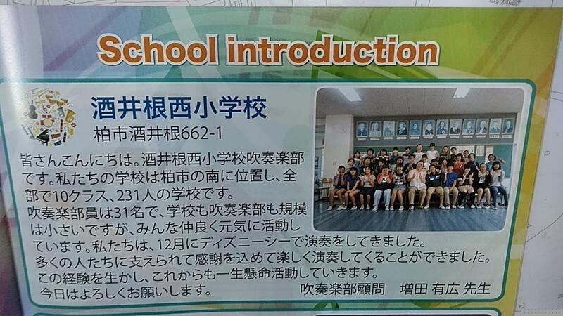 また、1月26日(日)に開催される「KASHIWA2020ニューイヤースクールブラスバンドコンサート」では、デイズニーシーでの曲+吹奏楽コンクールでの曲を演奏します。 ↓酒井根西小の紹介(プログラムより)