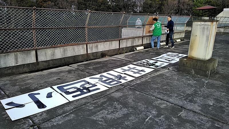 ↑屋上での作業の様子 ↑正門(西山方面)からも見えます