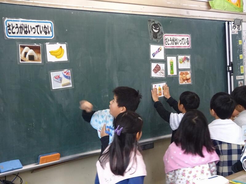 ↑歯科衛生士さん ↑さとうの入っている食べ物クイズ