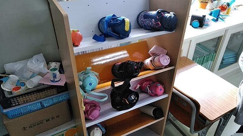 ↑6年1組と2組の教室(飾り付けとワックスがけをしてきれいになっています)