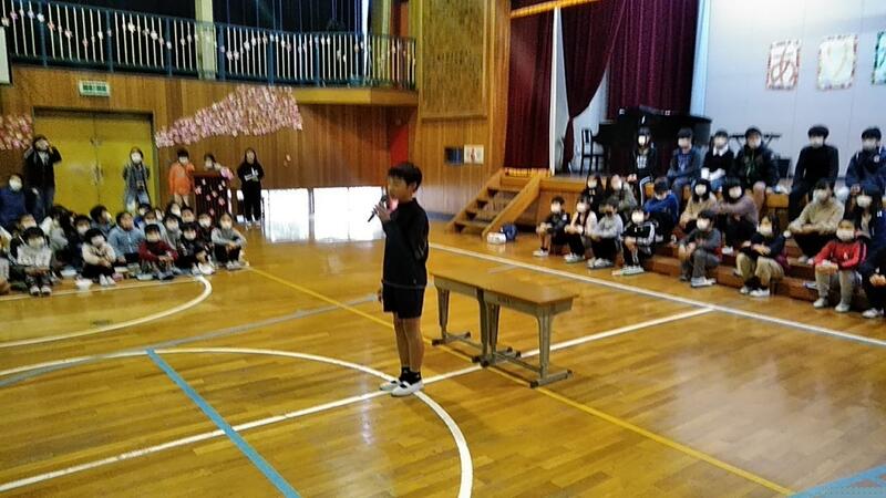 ↑先生方の話 ↑児童会、生井さんのお別れの言葉
