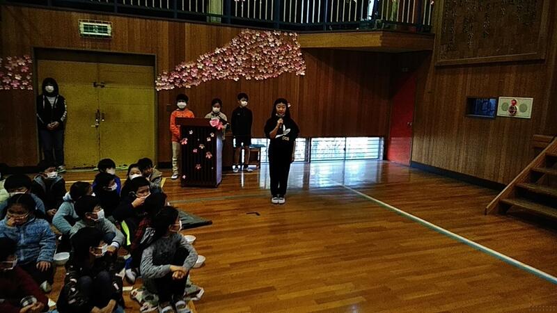 明日は、修了式と辞校式です。上履きと袋を忘れず、気をつけて登校してください。1年生から5年生までは8:10登校です。卒業生の皆さんは10:30登校です。