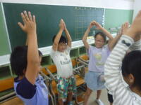 9月に歌った「パワフルパワー」を全校児童で歌いました。アップテンポな音楽に合わせて子どもたちがパワー全開で歌っていました。