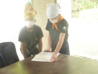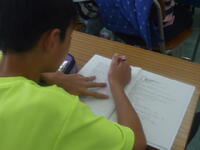 林間学校のしおりが完成し,クラスで読み合わせをしていました。