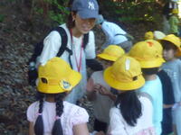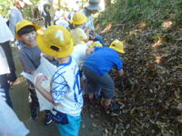 ドングリや赤くなった葉っぱ,いがぐりなど,下田の杜を散策しながら,各々で「秋」を探し,