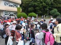 晴天の中,1年生は生活科の学習で,「下田の杜・秋さがし」を行いました。