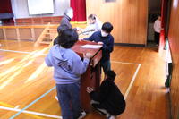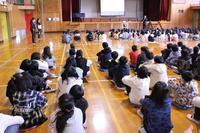 卒業式の流れの説明と、起立・着席のタイミングの練習を行いました。