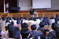 川野先生から今月の生活目標の「落ち着いて読書をしよう」について話がありました。そのなかで,図書室の利用の仕方についてのお願いがありました。「読書の秋」ですので,静かに図書室の本をたくさん読んでほしいと思います。最後に川野先生のおすすめの本である「てぶくろを買いに」,「白いぼうし」,「銀河鉄道の夜」が紹介されました。ぜひ,図書室で見つけて読んでみてください。