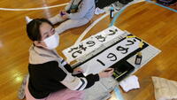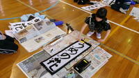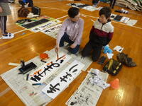 朝から寒く,体育館の状況はどうかなと思いましたが,教頭先生や書写担当の小金丸先生が,