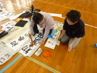 本日,4年生と5年生が体育館で,「書初め」を練習しました。