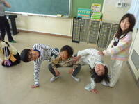 「ワンタッチ彫刻」は3~4人のグループでじゃんけんに勝った人が最初に,思い思いのポーズをとり,