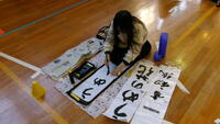 今年は講師として,書道教室を開いている「石原よし子」先生にご指導しに来ていただきました。