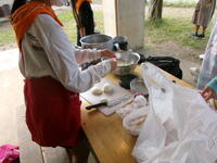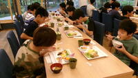 予定の時間に集合し、いただきます。ゆっくり、しっかり食べていました。
