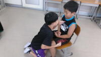 今日は,「変身しりとり」,「ヘンテコモモタロウ」などクラスに合わせてプログラムを実施しました。