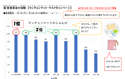 9/16~9/30までに給食委員会で実施した「ランチョンマット・マスクキャンペーン」の結果で、