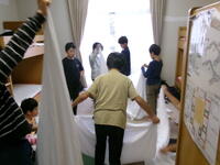 到着式を行い,その後は荷物を整理して、部屋ごとに過ごしています。