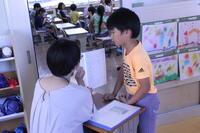 1年生にとっては小学校で初めて受け取った通知表です。みんな緊張しながら受け取っていました。通知表は担任が一人一人のがんばりを評価したものです。通知表を配付するにあたって,担任から児童一人一人に声をかけていました。それぞれに思うところがあると思いますが,これからがんばるための材料としていただけるとありがたいです。