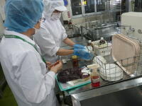 給食室では,日々給食を作るうえで,食材の点検や,洗浄,調理員一人一人の作業動線(調理する際の動きの計画)