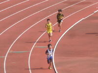 1年生は一生懸命に走り,6年生はやさしく声援しながらも,カウントして記録をとって