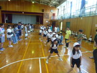 降車後、昇降口にてリーダーを中心に,「到着式」を行いました。