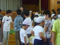 1年生は初めてのスポーツテストです。やり方やできた数を数えるのも難しいことから,