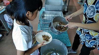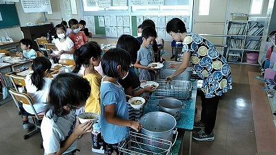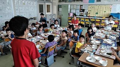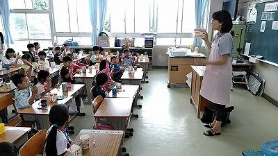 3年生が校外学習の市内巡りに出かけているので,今日「給食試食会」が開かれました。12名の保護者の皆さんの参加でした。1年生の給食配膳を見学し,給食を実際に食べ,その後給食や子どもたちの栄養等について清水栄養職員から話がありました。