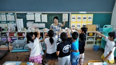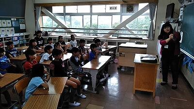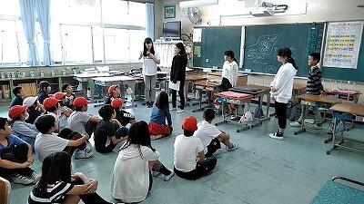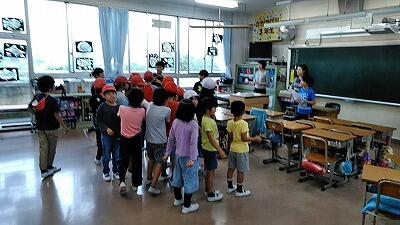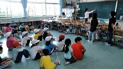 ↑今日の講師は「すぅさん」と「しろめぐ」 ↑「宇宙人さがし」ゲームで盛り上がる4年生