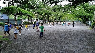 ↑正門からすぐの「西山第四公園」で鬼ごっこをしました