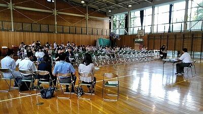 先日の北海道での地震や西日本地方での台風では、大きな被害がでました。でも災害は待ってくれませんし、必ずやってきます。そこで、今日は、年に1回の引き渡し訓練と11回目の地域との合同訓練が行われました。引き渡しは雨のため、校舎内で行いました。(天気の良いときばかりとは限りません。)合同訓練は、5,6年の子どもたちも含めて約250名の参加でした。災害が起こったときは、家族、地域で協力していくことが大切だと再確認しました。(夜や休日に災害が起こった時、私は酒西小にたどり着くまで最低2時間はかかります。ですから、地域の皆さんが頼りなんです。)