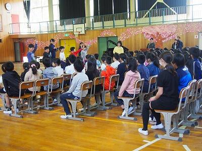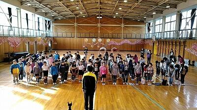 ↑児童会長の話 ↑全校で校歌斉唱(とても上手でした)