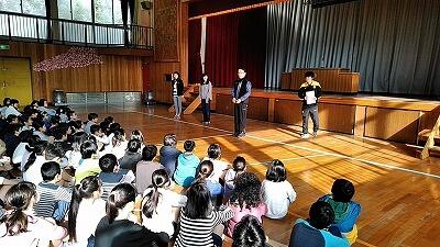 文化庁による「文化芸術による子どもの育成事業」の巡回公演事業というところに、昨年応募したところ、見事当選し、今回演劇「ねこはしる」(アートインAsibina)を明日行うことになりました。今日は、この演劇に出演する「4年生」との打ち合わせ(ワークショップ)を行いました。