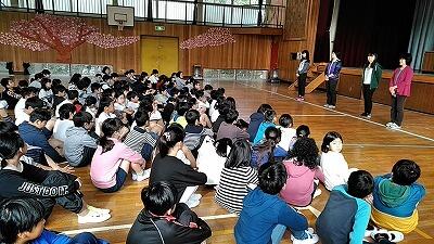 今年度も運動部と吹奏楽部の活動がはじまります。4年生から6年生までの107名が体育館に集まり,年度初めの説明会をおこないました。