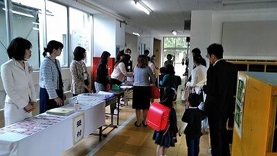 ↑担任の伊藤先生を先頭に退場する新入生 ↑PTA役員決め(お母さん達) ↑お父さん達はおやじの会へ
