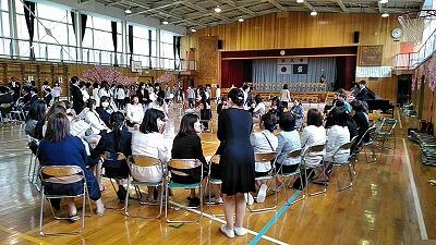 ↑1年1組担任伊藤智子先生が新入生一人一人の名前を呼びました ↑最後は全員で校歌合唱
