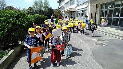 1年生は,きょうで入学して35日目です。学校生活にも徐々に慣れ,先日の運動会でもほんとうによくがんばっていました。でも,まだまだ学校には,行ったことのないところもたくさんあります。グループに分かれてたんけんしました。