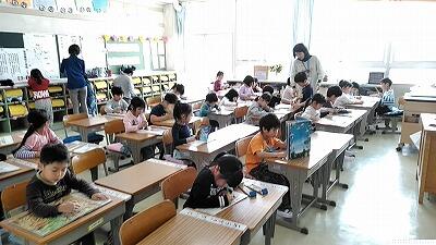 きょうは,初めての業間休み(2時間目と3時間目の間で、20分間)でした。新しいクラスの先生や友だちと外や教室等で楽しそうに遊んでいました。