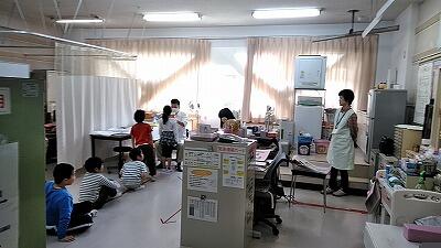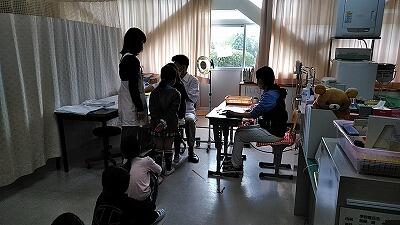 ↑グループごとに校舎内をまわります ↑事務室で清水栄養士さんに聞いているところ