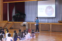 毎月1日は全校朝礼が行われています。11月になり,体育館の中の空気もひんやりと感じられるようになってきました。子どもたちも,これまで以上に集中してお話を聞いていました。