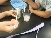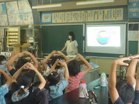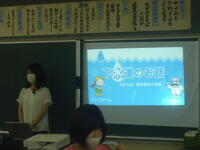 下水道についての説明と,なぜトイレにティッシュペーパーを流してはいけないのかの実証実験をクイズを交えて行ってくれました。子どもたちは、興味を持って学習できました。