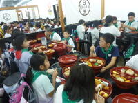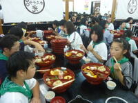 本日(7/20)開催されている「西山まつり」において、酒井根西小学校児童のボランティアで、