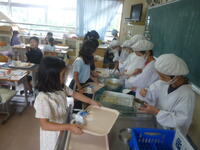 夏休みをはさみ一ヶ月ぶりですが,給食準備スムーズに行えい,ほぼ時間通りに「いただきます」が