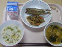 ました。さやむきを行ったグリンピースは,給食調理室にてゆで上げて,本日のメニューとして全校生徒が