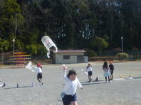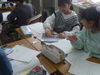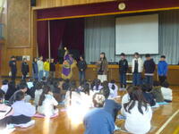 2年生が自分たちが作ったかるたを使って,体育館でかるた大会を行いました。普通のかるたよりワンサイズ大きな絵札を体育館に置いておき,先生が読み札を読むと,絵札に向かって猛ダッシュ!自分が走った方向に絵札があると取れるのですが,なかった場合はどんなに足が速くても絵札をとることができません。反射神経だけでなく,運の良さも必要なかるた大会でした。