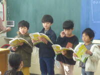 声をそろえ,教室内で聞こえるほど良い声で,練習の成果を発表していました。