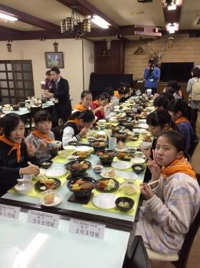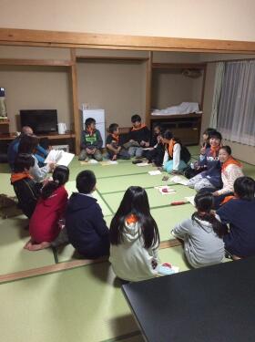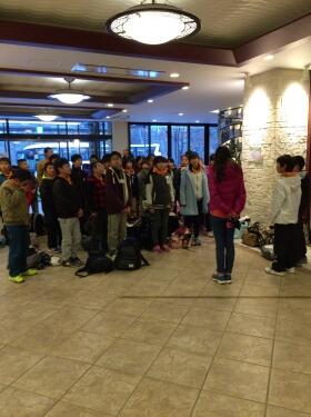 到着の会の様子です。みんなでスマイルスマイルを歌い、きれいな歌声をホテル内に響かせていました。