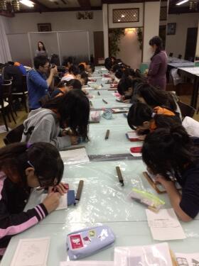 自分で納得のいく文字を書くのはなかなか難しいです。講師の先生のご指導で,少し上達したようです。冬休みの練習も頑張ります。