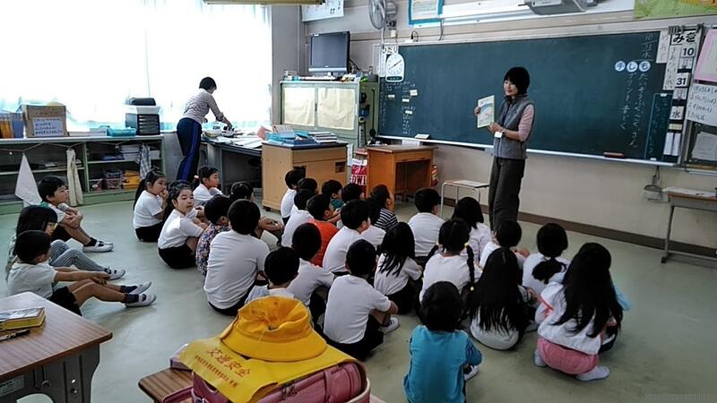 1年生に読み聞かせがありました。いつもはボランテイアの方なのですが、きょうは、