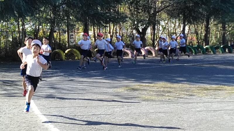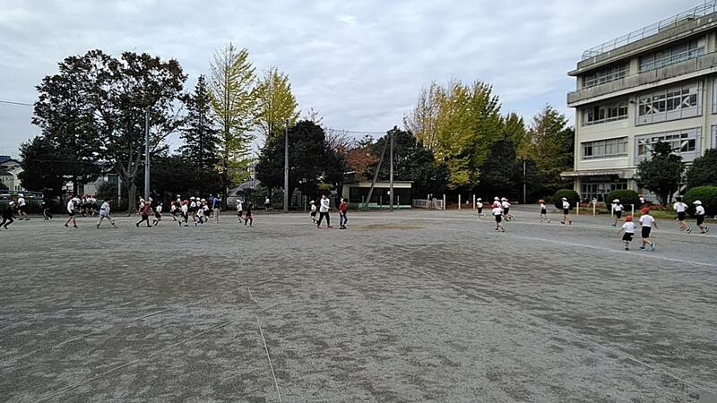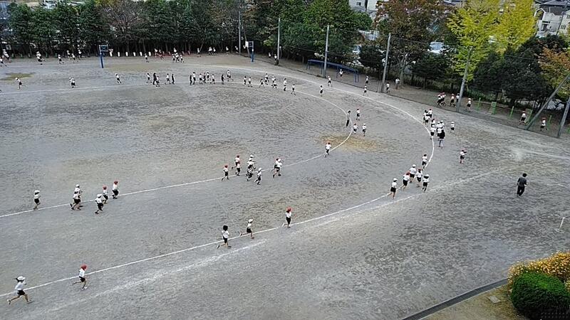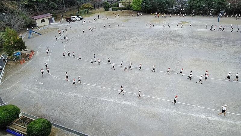 ↑校庭全景(ほとんどの児童が自分なりのペースで走っています。)